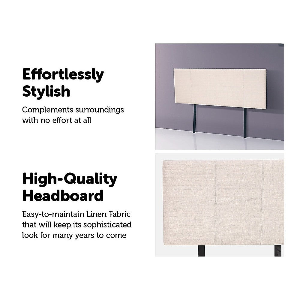 This headboard for standard Double-sized bed frames is created with quality materials, including easy-to-maintain Linen Fabric that will maintain its sophisticated look for many years to come. This particular model comes with elegant stitching accents that provide just the right level of understated pop. A neutral beige will blend seamlessly with a wide variety of bed frames and other bedroom furniture.