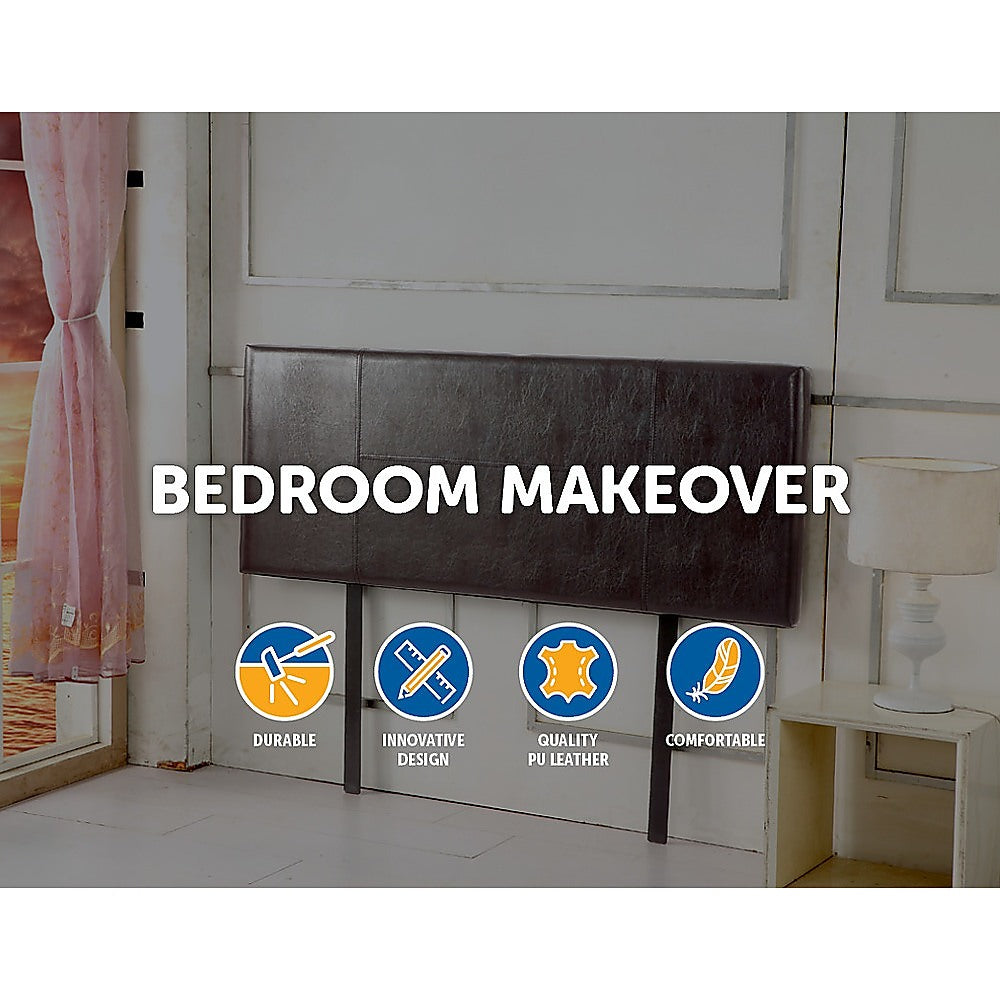 This headboard for standard Double-sized bed frames is created with quality materials, including easy-to-maintain PU leather that will maintain its sophisticated look for many years to come. This particular model comes with elegant stitching accents that provide just the right level of understated pop. A neutral brown will blend seamlessly with a wide variety of bed frames and other bedroom furniture.