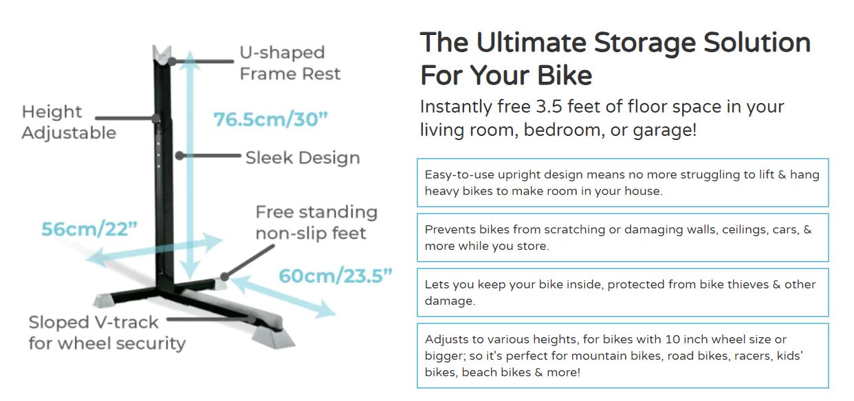 The Ultimate Storage Solution For Any Bike! Easy-to-use upright design means no more struggling to lift & hang heavy bikes to make room in your house.