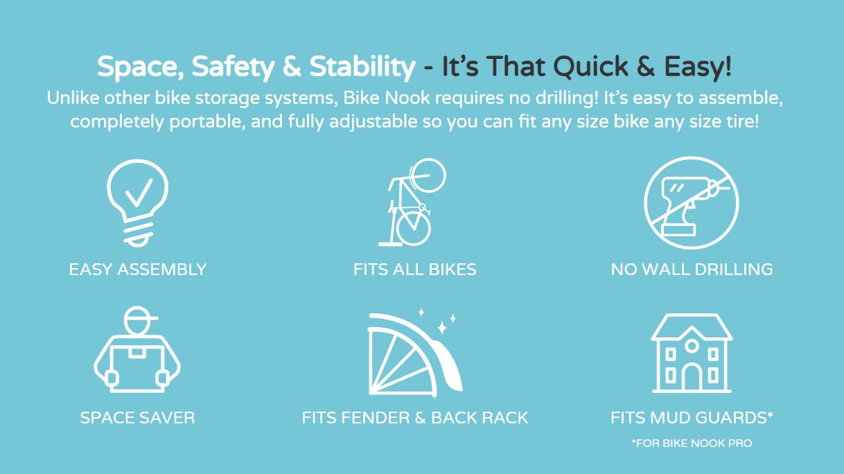 Prevents bikes from scratching or damaging walls, ceilings, cars, & more while you store. Space, Safety, & Stability - It's That Quick & Easy!