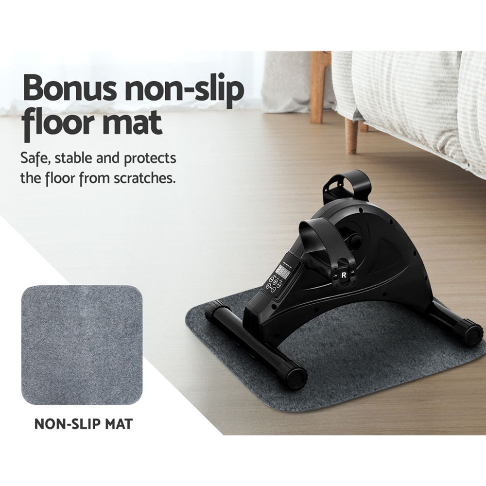 Be ready to exercise any time with the Everfit Pedal Exercise Bike. The machine is lightweight and portable, meaning you can use it anywhere – from your couch, home gym, living room, or on the go. Exercise in reverse to target different muscle groups for an even workout. Comfortable pedal straps on top of wide foot pedals will keep your feet in place, while the ergonomic design won’t impact your knees. A sturdy frame and non-slip feet keep you and the machine firmly in place, and the quiet load bearing means you can exercise silently without disruption. The clear multi-function LCD display shows several exercise parameters such as time, distance, speed and total calorie count. You can operate the exerciser manually or by remote control for convenience. Best of all, the machine comes fully assembled and ready to perform. Get moving from anywhere with a Pedal Exercise Bike from Everfit.