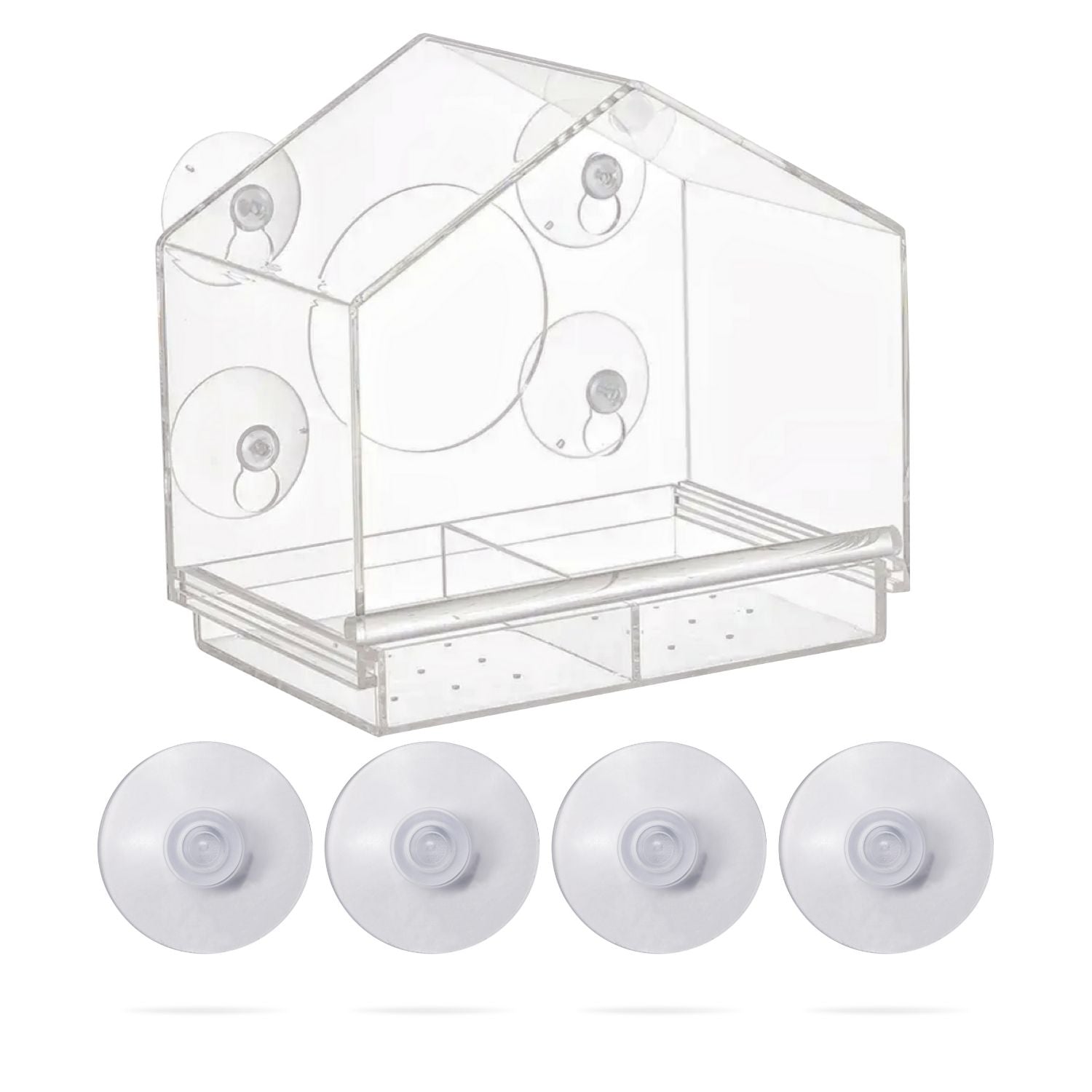 4 suction cups: Complimentary with 4 powerful suction cups to securely secure the bird feeder to the window. It is best to use double-sided adhesive for reinforcement.