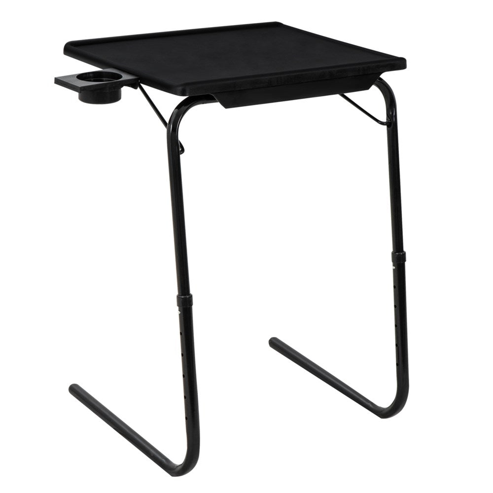 Foldable Table Adjustable Tray Laptop Desk with Removable Cup Holder-Black