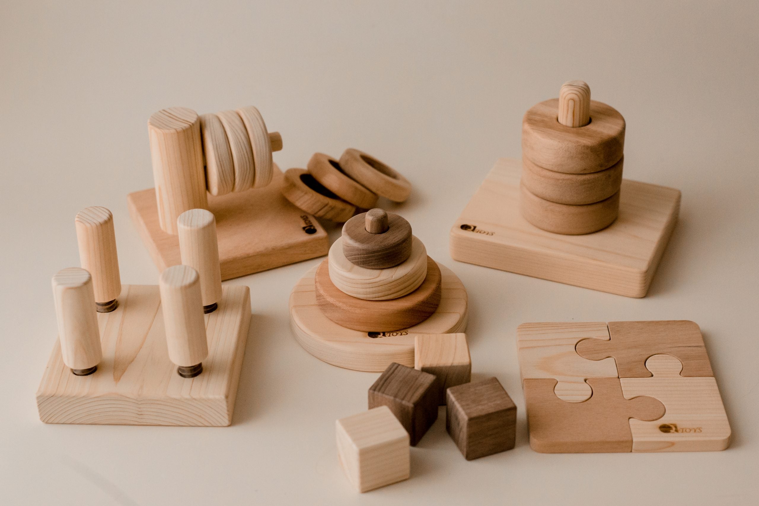 Brain teaser puzzle 3D hand made - Football round natural wood for kids or adults