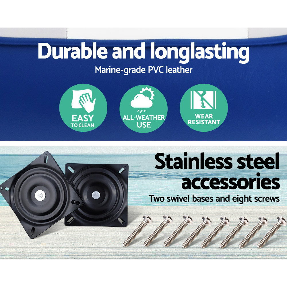 Thinking of replacing those tired looking seats on your leisure fishing boat? Stop thinking about it, this 2X Premium Foldable Boat Seat is the perfect product for you. Made of premium moulded plastic and UV resistant PVC, this boat seat is built for all weather conditions and the ruggedness of a fishing enthusiast. It is highly resistant to salt water rusting or heavy exposure of UV rays. Combined with a set of robust alloy hinges and stainless steel hardware, this foldable boat seat is a truly solid item, while adding a stylish look to your boat. Also comes with a swivel base allowing the seat to spin around and be safely positioned on the seat point.