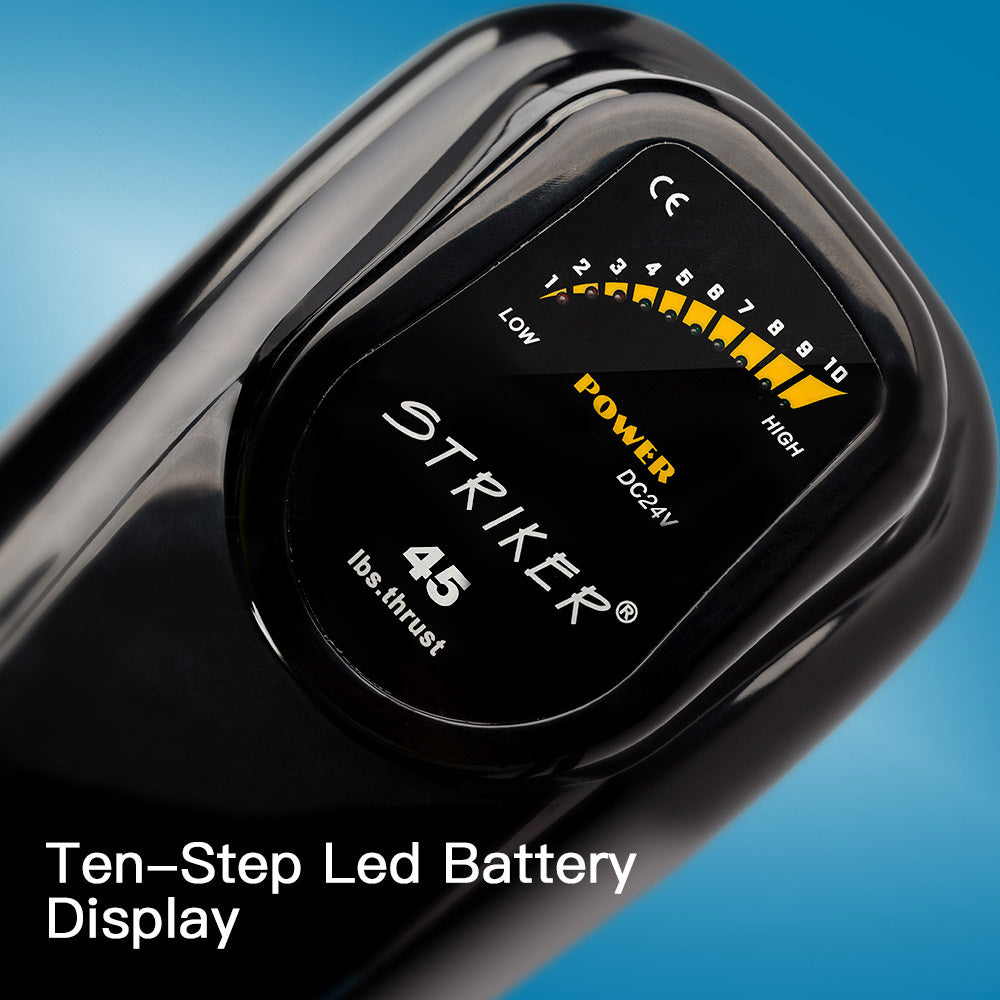 With super-low power consumption, the Genuine Striker gets the most out of your 12V battery. And thanks to its clear LED display, you will always be in control of the power. Suitable for small water crafts such as inflatable boats, canoes and aluminum fishing boats, refer to the below graph for boat size. Simply twist the handle and sneak up on the fish at the optimal speed. With five forward speeds and three reverse speeds, you'll make the right approach every time.