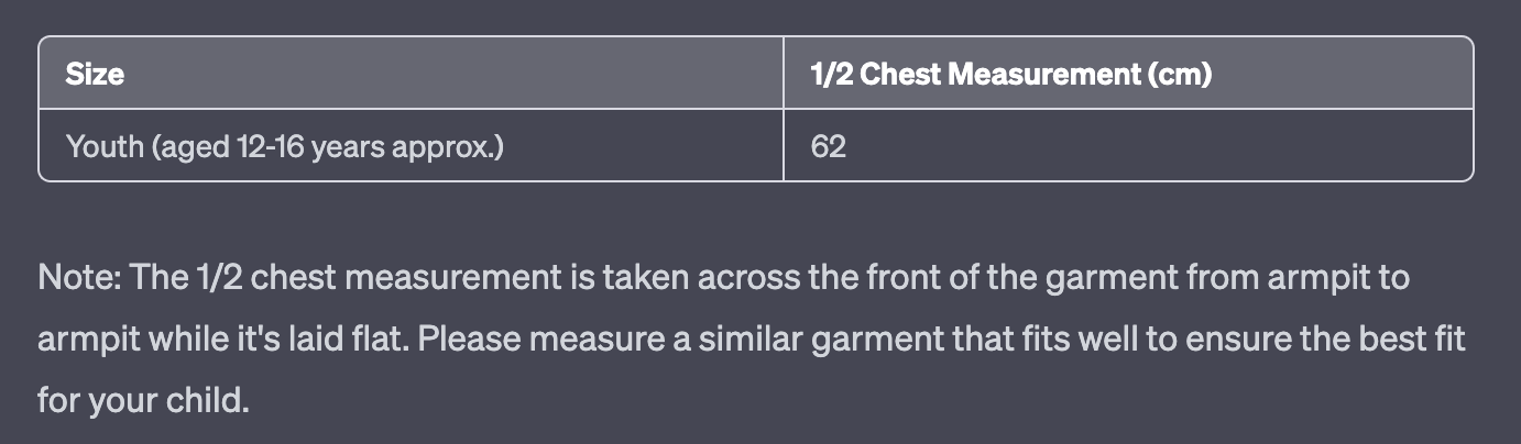 Fits youth aged 12-16 years of age approximately.