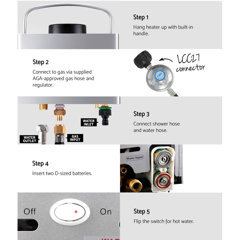 Who doesn't like a just-right warm water shower anywhere, anytime? The Devanti Gas Water Heater is all you need for that instant shower gratification.