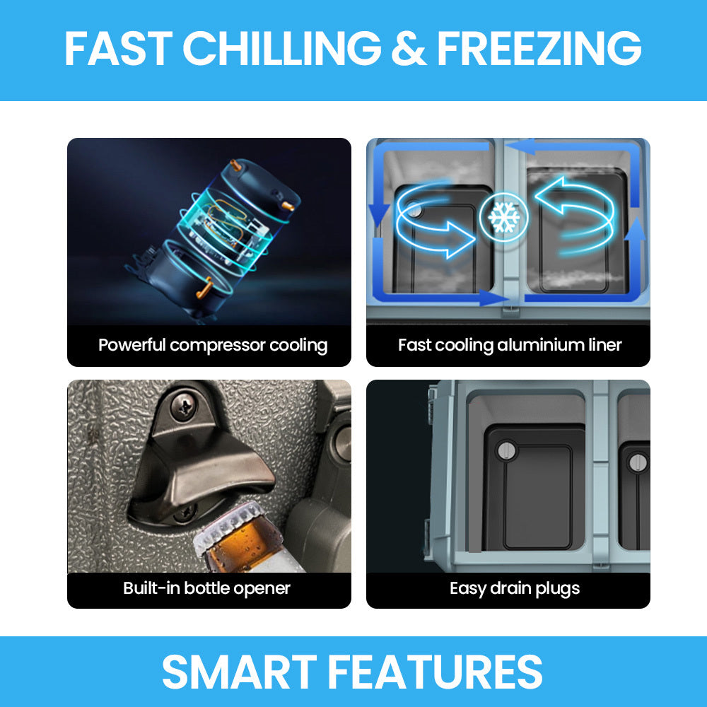 • 1 x GECKO 55L Dual Zone Portable Fridge