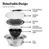 Customizable Flame Size for Precision Grilling: Take control of your grilling experience with adjustable flame sizes. The two ventilation holes on the side allow you to fine-tune the intensity of the flame, providing flexibility in cooking different dishes. The detachable design adds to the convenience, allowing you to effortlessly carry the barbecue set for outdoor activities such as camping, picnics, hiking, or fishing.