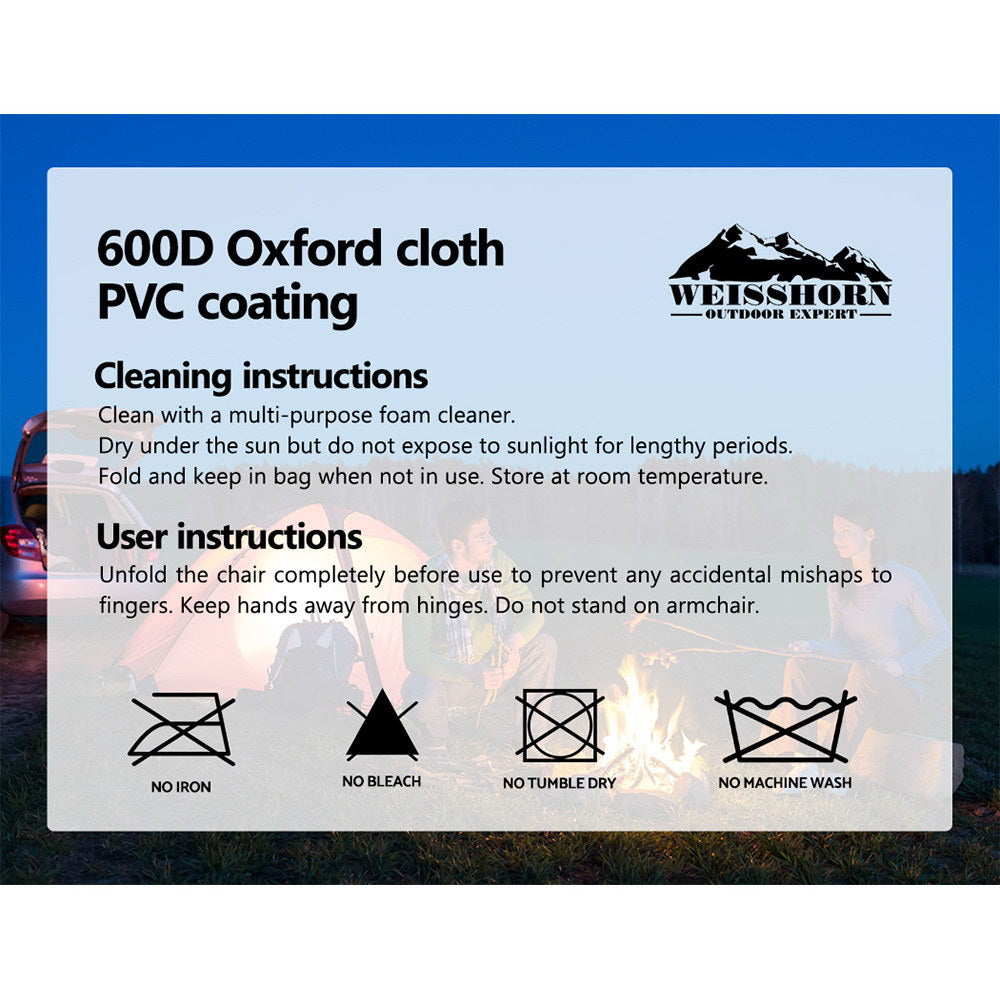 Weisshorn 2X Camping Chairs Folding Arm Chair Portable Outdoor Garden Fishing