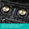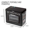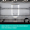 Made with quality stainless steel, you can be confident of the unit's durability. Featuring 5,300 BTU twin stove burners with non-stick enamel surface, a 3500 BTU oven with dual racks, removable oven thermometer and a bonus roasting tray, the Thermomate Outdoor Camping Oven has thoughtfully included everything you need to create a home cooked meal outdoors. The folding lid and arms will shelter heat from wind while cooking. Cleverly designed, it is powerful yet compact, weighing only 15kg, ensuring easy transportation and storage.