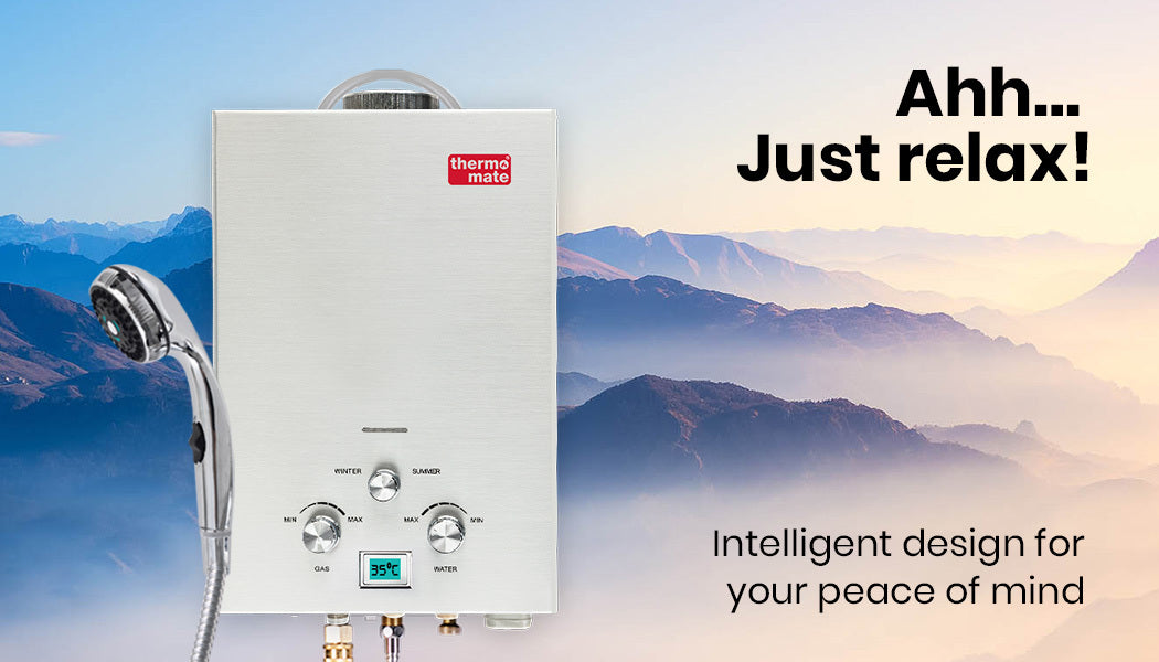 At just 6kg and with a fold-out handle the Thermomate is highly portable and includes all the necessary hoses and gas and water connectors. The unit is simple to install, and all you need to supply is water (from a gravity fed supply), 2 x D batteries and a gas bottle! And of course, the Thermomate range complies with rigorous Australian standards relating to safety, performance and reliability, so you can simply set yourself to 'holiday mode'!