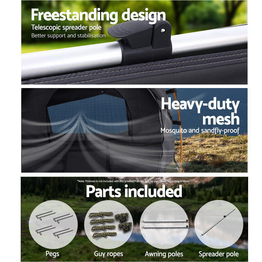 Weisshorn Double Swag Camping Swags Canvas Free Standing Dome Tent Dark Grey
