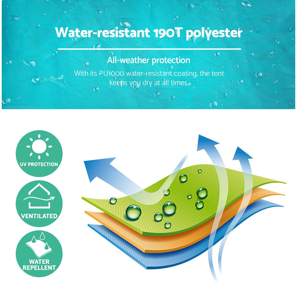 On the beach, in the forest, up in the hills, roaming through the outback or just hanging out in the backyard, our Weisshorn Pop-Up Tent is your handy shelter in the open anytime of the year. With ample room for three persons, the pop-up tent features a heavy-duty 190T PU material construction with water and UV resistance and has a silver-coated interior that provides more light and reduces heat accumulation. Setting it up is super-easy – just throw it onto the ground to let it pop up by itself, then anchor to the ground with included pegs. Packing up is just as simple as folding the tent and storing it neatly into the carry bag with the pegs. Whatever your passion, take the Weisshorn Pop-Up Tent with you and have some memorable moments to treasure under the skies.