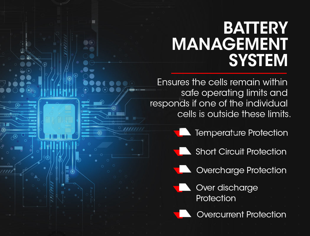 In terms of performance, the X-Cell Lithium range really sets itself apart from other options. With a very constant discharge voltage, the voltage stays close to 12v until the cells are almost exhausted. Importantly, this gives you much usable life per cycle, and is much kinder to your accessories, like a fridge or lighting. An internal BMS (Battery Management System) monitors each cell to protect and optimise performance, maximise lifetime, and ensure safe operation.