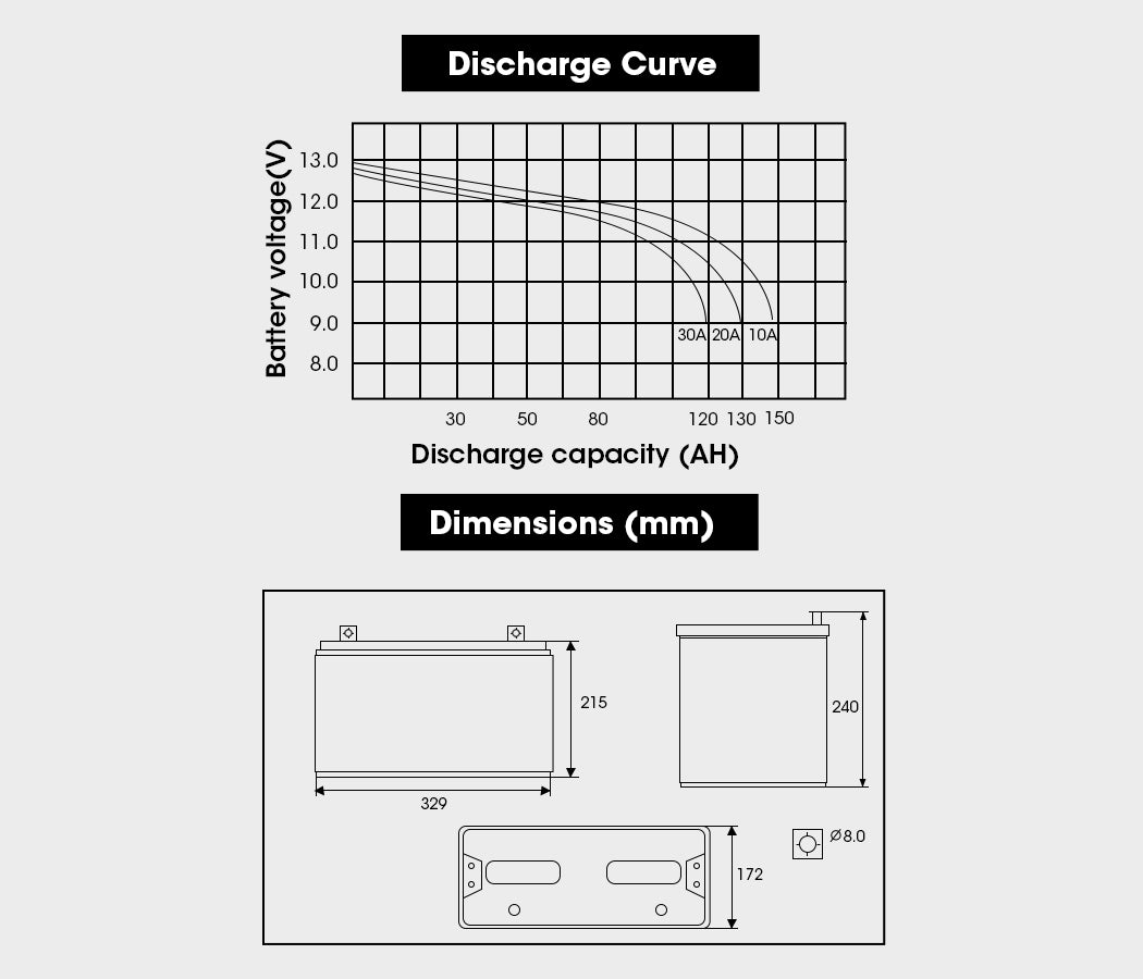 In terms of performance, the X-Cell Lithium range really sets itself apart from other options. With a very constant discharge voltage, the voltage stays close to 12v until the cells are almost exhausted. Importantly, this gives you much usable life per cycle, and is much kinder to your accessories, like a fridge or lighting. An internal BMS (Battery Management System) monitors each cell to protect and optimise performance, maximise lifetime, and ensure safe operation.