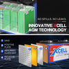 The AGM 50-12 occupies advanced fine fiberglass mats between its plates that act to retain the electrolyte that would otherwise be free flowing, resulting in a much more stable and reliable end-product. X-Cell AGM batteries are completely sealed, meaning they don\'t leak or let off any gas and come with a range of other benefits.
