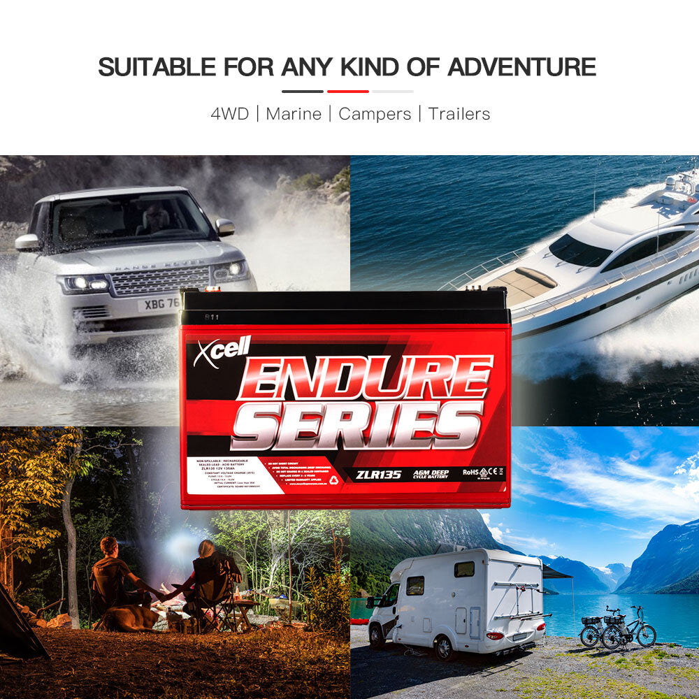 The X-Cell ZLR135 AGM Deep Cycle Battery delivers the gold standard in Maintenance-Free, Sealed Lead Acid battery performance. This highly-resilient, portable and powerful 12V 135Ah battery provides enduring off-the-grid power supply for 4WD vehicles, caravans, campers, trailers, motor-homes, saltwater/marine applications, and all 12V appliances you want access to in the outdoors.