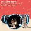 This cat tunnel with 3 spacious tunnels, peephole & bell toy can allow more than one cats to play at the same time. Give your kitty more ways to have fun. That cat tunnels for indoor cats made of ultra-strong, tear-resistant polyester wrapped around sprung-steel frame with protective ends this tunnel, the fully-enclosed steel frame stands up to the most energetic games. Our cat tunnel folds down small in seconds for travel and storage.