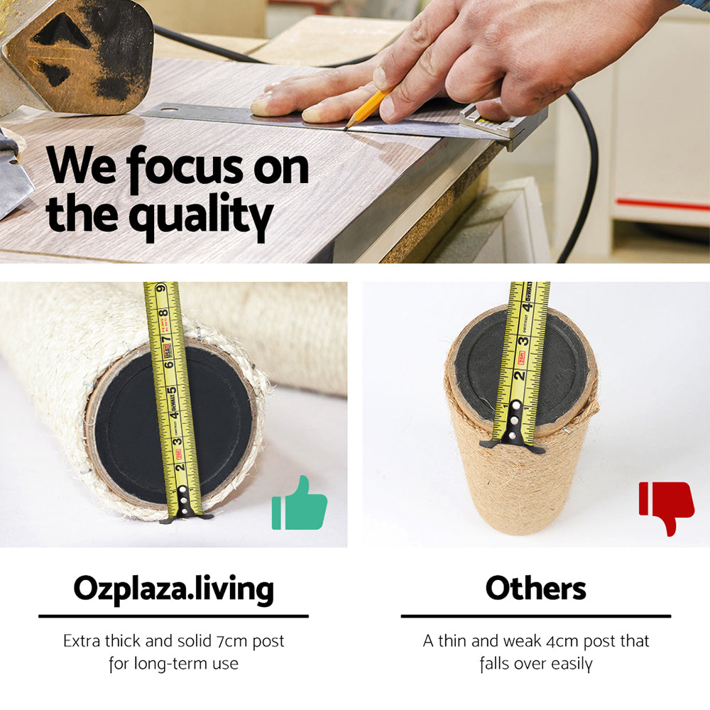 Designed to be a condo that exudes a sense of security, the 1.8m Scratch Tree features cubby holes and platforms of various heights to allow your pet to jump, hop, skip, scratch, rest and nap to its heart's content. And as for its claws maintenance, the fully wrapped 7cm thick sisal covered poles are ideal for your pet to practice her daily regime of keeping its claws in good shape. Besides, it also helps to keep your pet off your expensive furniture too.