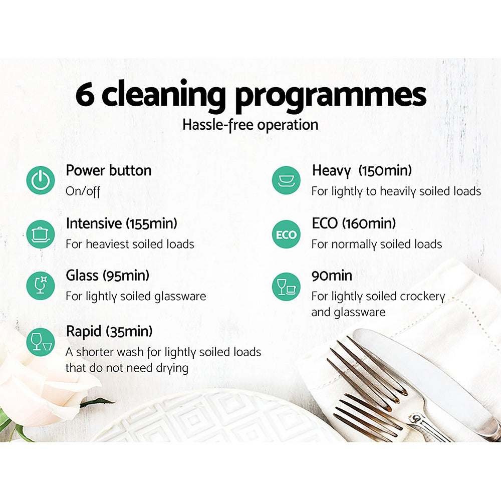 *6 cleaning programs: Intensive / Heavy / ECO / Glass / 90min / Rapid