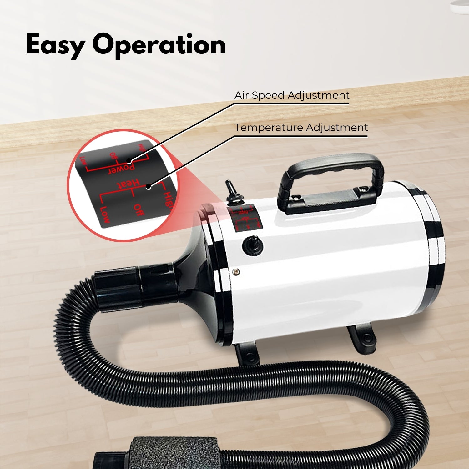 Efficient and Powerful Drying with High Air Flow: Experience efficient and powerful drying for your pet with the high air flow of this pet hair dryer. It ensures quick and effective drying to keep your furry friend comfortable.