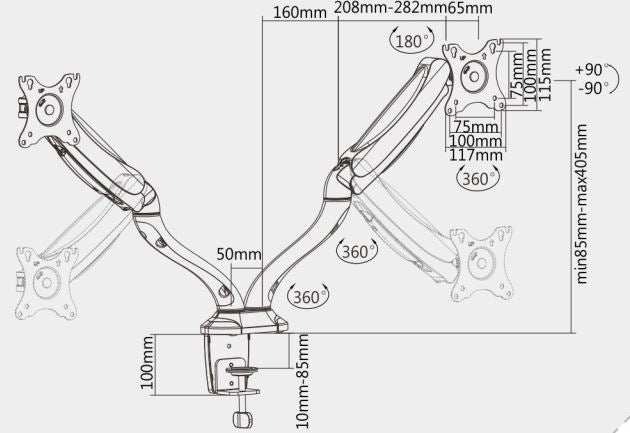 The LDT09-C024N is constructed with solid steel, elegant die casting aluminum and integrated with innovative counterbalance technology. It can efficiently frees up space on your desk and easily move your LCD monitor into the best ergonomic position. Highly adjustable arm moves up, down, forward and back with just a touch. With weight capacity of 6kg/13.2lbs, this desk mount features 360° monitor rotation, -90°~ +90° tilt, 180°swivel and vertical distance height adjustments. The desk arm is designed with cable management to provide neat desk space. The monitor mount is ideal for offices, homes, public area, industrial settings, production line and many more.