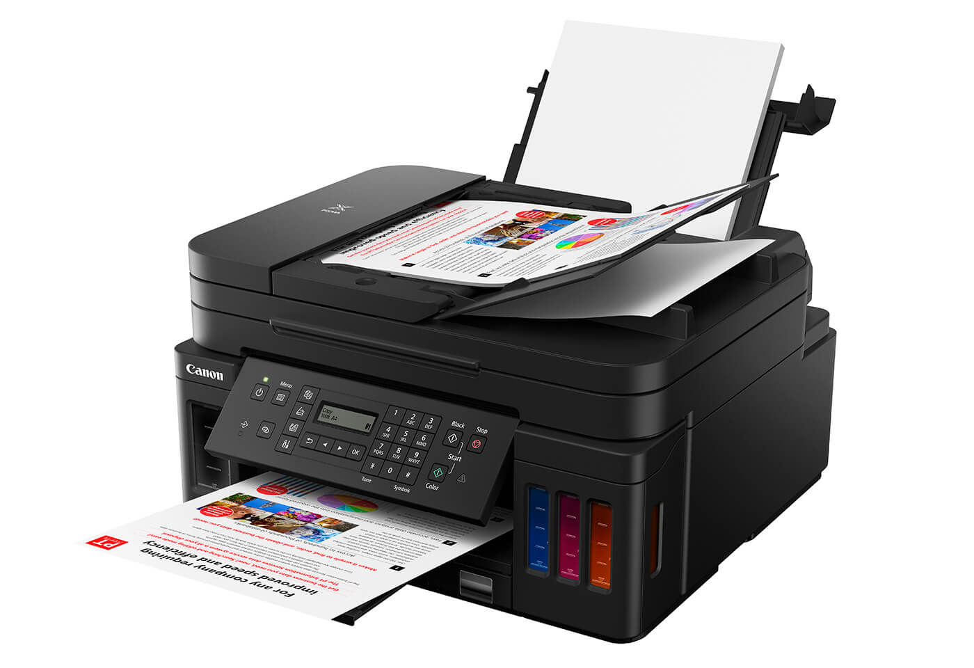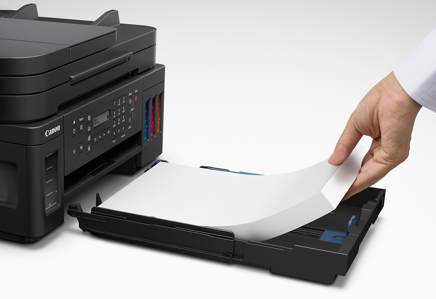 How much printing are you doing at home or in the office? Do you find it frustrating that you always seem to be out of ink when you need it most? The PIXMA G7065 MegaTank is a multi-tasker’s dream, delivering print, copy, scan and fax functions via Wi-Fi or Cloud - plus with easy refill ink tanks, you can print more and mess free compared to cartridge printers. With each tank of ink you can print up to 6,000 pages in black or 7,700 pages from a colour set, keeping the same Canon quality at a low cost-per-page.