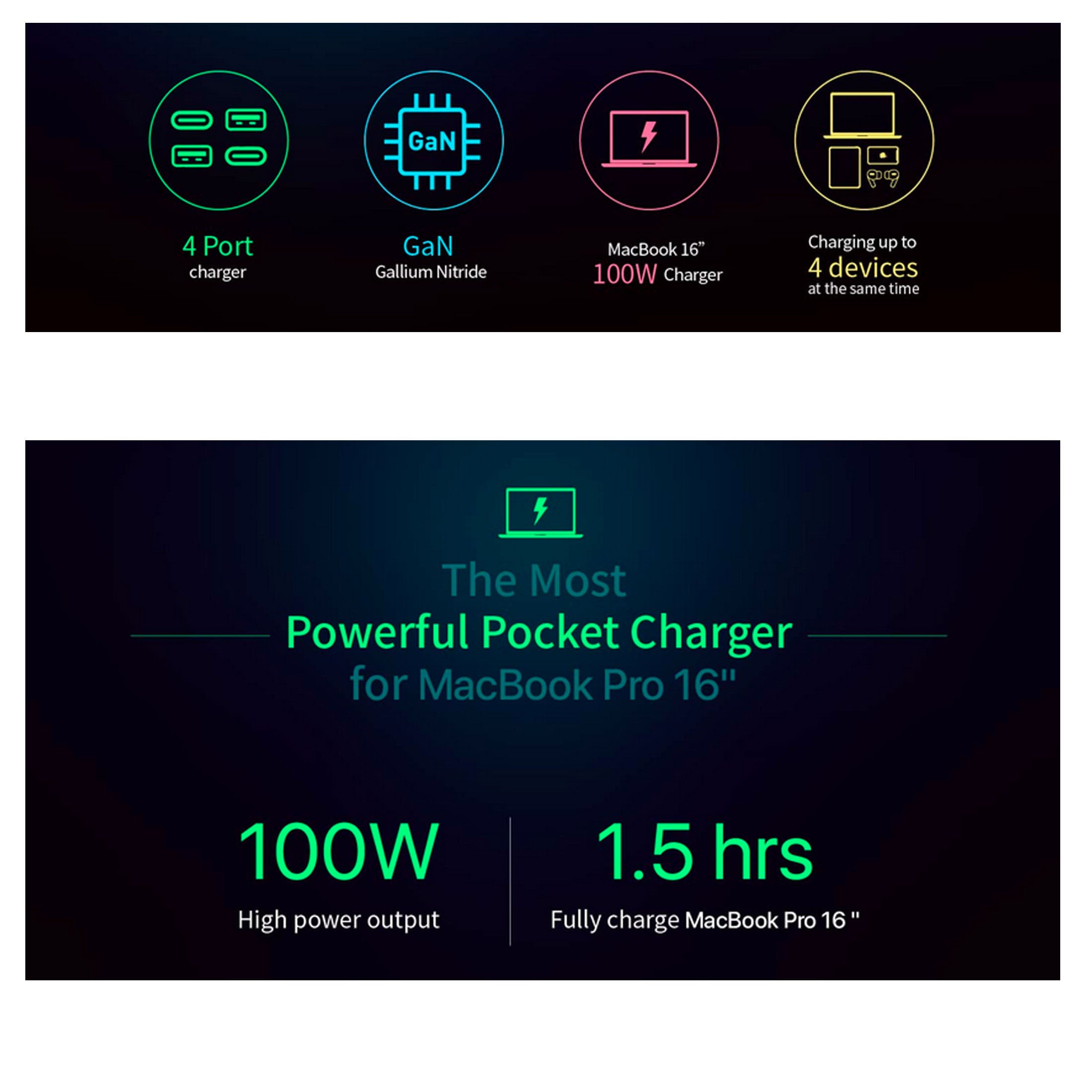 Powered by revolutionary GaN technology that packs 100W charging power in just a palm-sized charger.