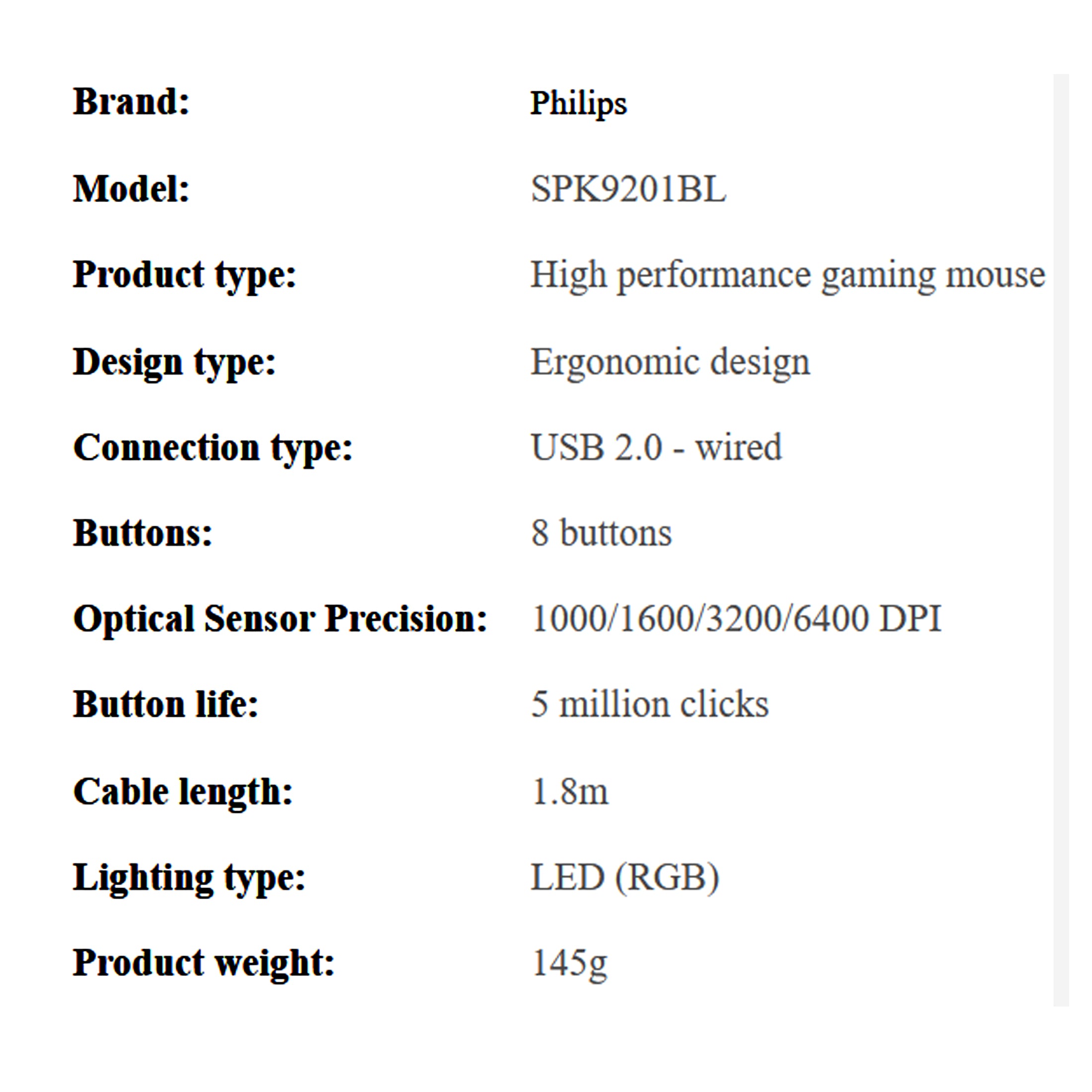 Philips High Performance Wired RGB Gaming Mouse SPK9201BL