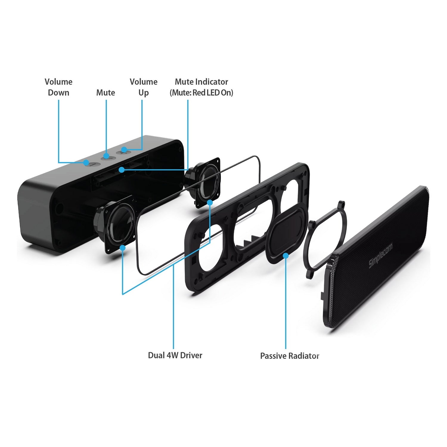 Simplecom UM228 Portable USB Stereo Soundbar Speaker Plug and Play with Volume Control for PC Laptop