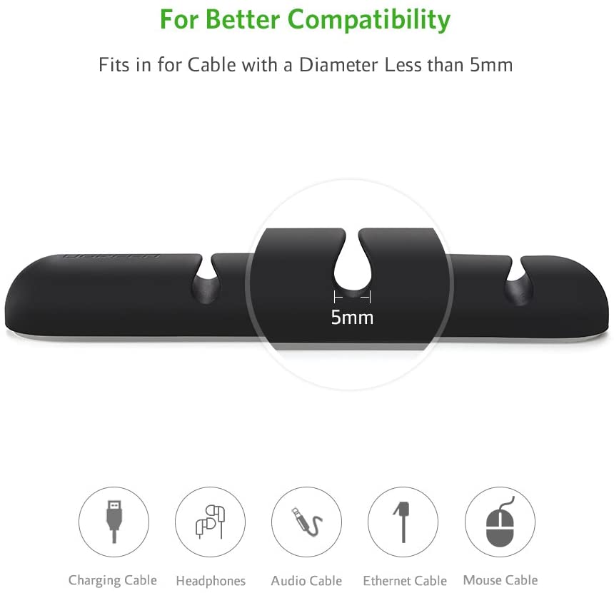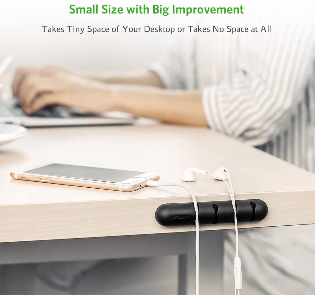 UGREEN Cable Organizer is made of highly durable & flexible Silicone for organizing cables without any bad smell;The compact design maximizes your desk space, leaving you with plenty of space to work.