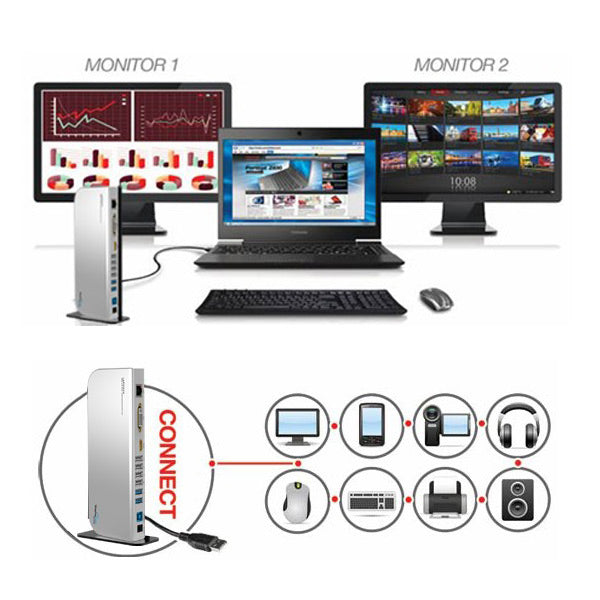 The Docking Station with Video offers desktop computer users the convenience of accessing the peripherals within reach, eliminate the hassle of connect or disconnect the peripherals from the rear of a computer.