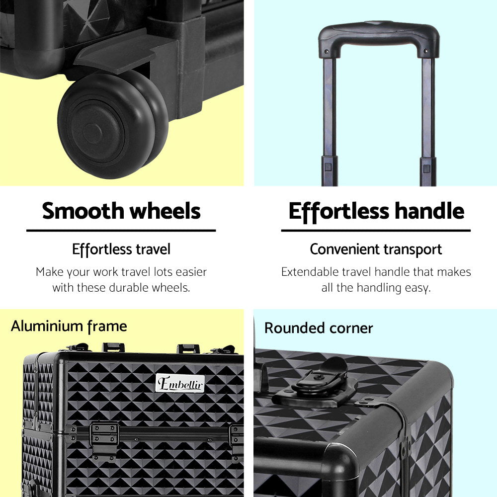7 in 1 Portable Beauty Make up Cosmetic Trolley Case Diamond Black