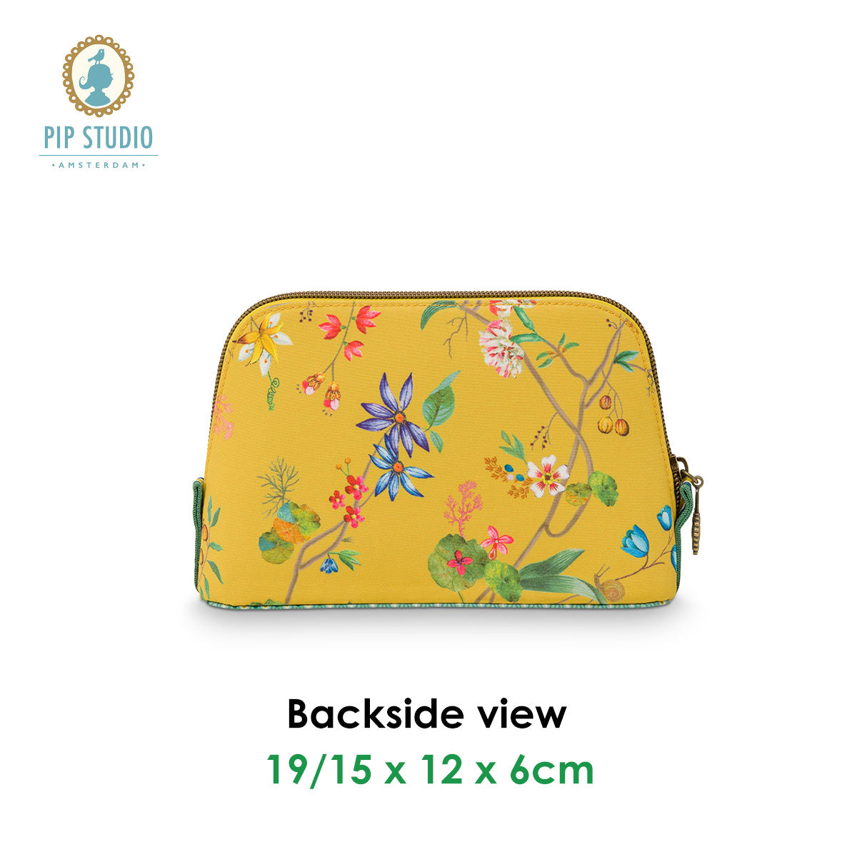 This Petites Fleurs Yellow Small Triangle Cosmetic Bag by PIP Studio is perfect for daily use in your bathroom or to take with you on a trip. The cosmetic purse is made of water-repellent satin that is trimmed with faux leather piping. You will find multiple exotic flowers and plants in different shapes and colours of black, blue, brown, green, red, olive, gold, and yellow on a yellow background which represent the beautiful Petites Fleurs print. Mix & match the cosmetic purse with our Homewear items of this season for a stunning result.