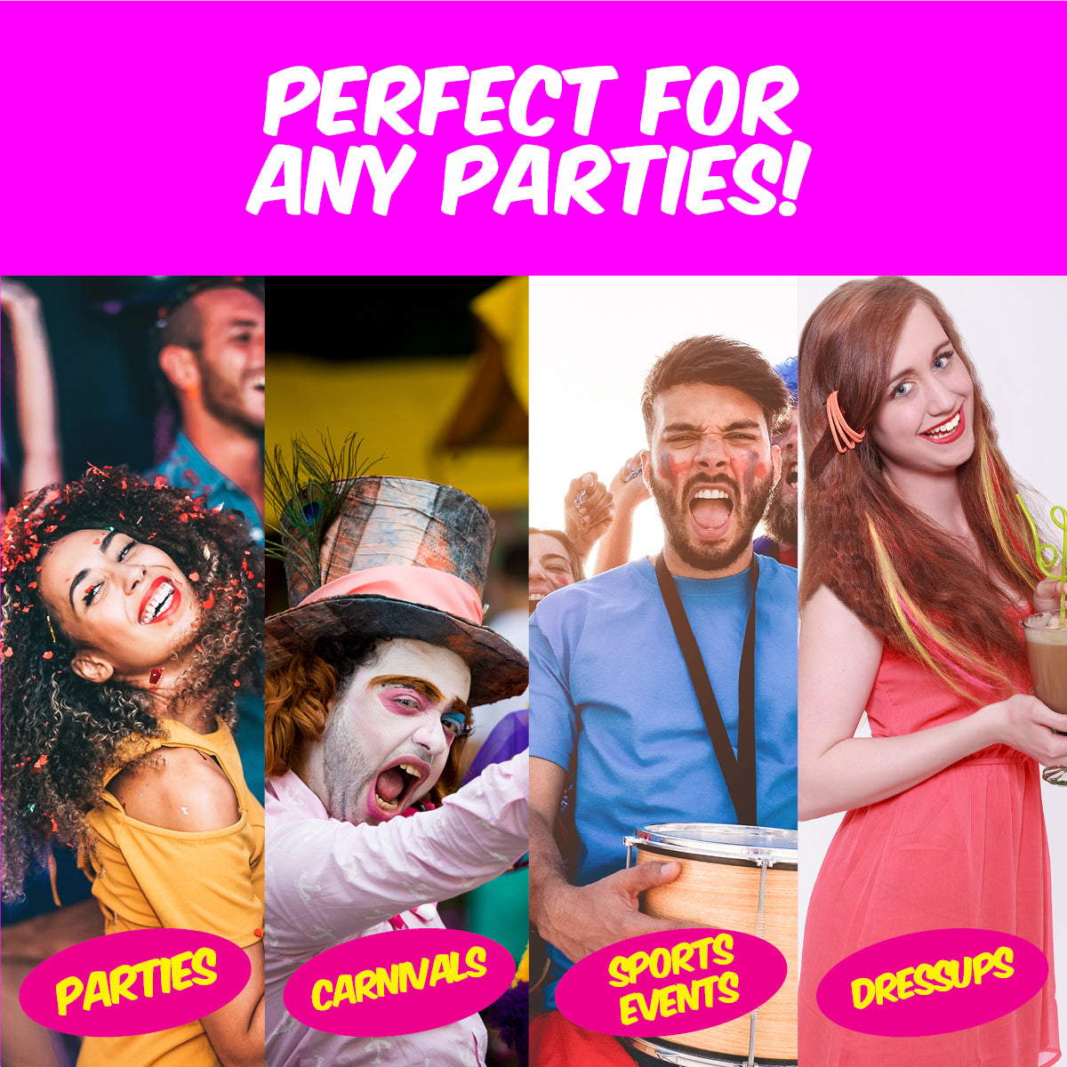 • Perfect For Many Occasions: Birthdays, Parties, Carnivals, Special Events, Gender Reveal, New Year's Eve‚ Sports Events, Dressup