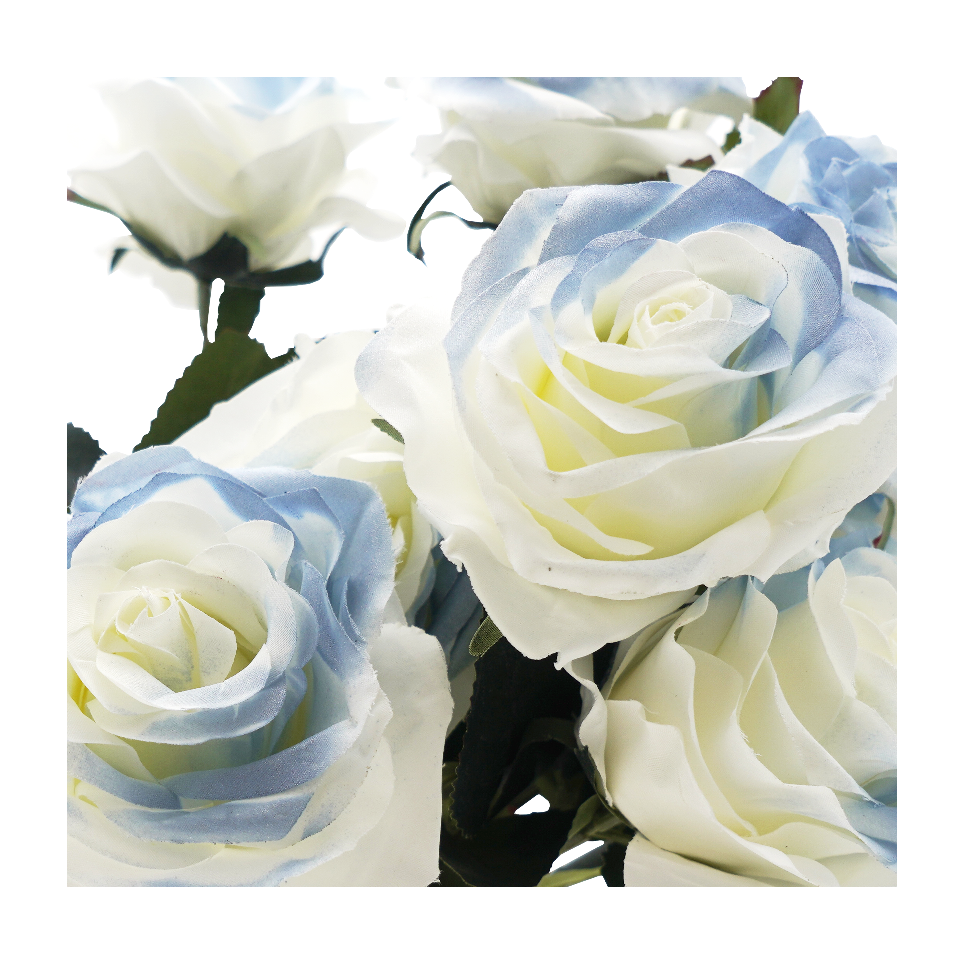 With ten large open heads and green leaves details, our artificial Rose Bouquet will help you create big and vibrant wedding arrangements and bouquets. Or either you can add them to a clear jar, pairing them with light coloured pebbles to give it a simple yet elegant look.