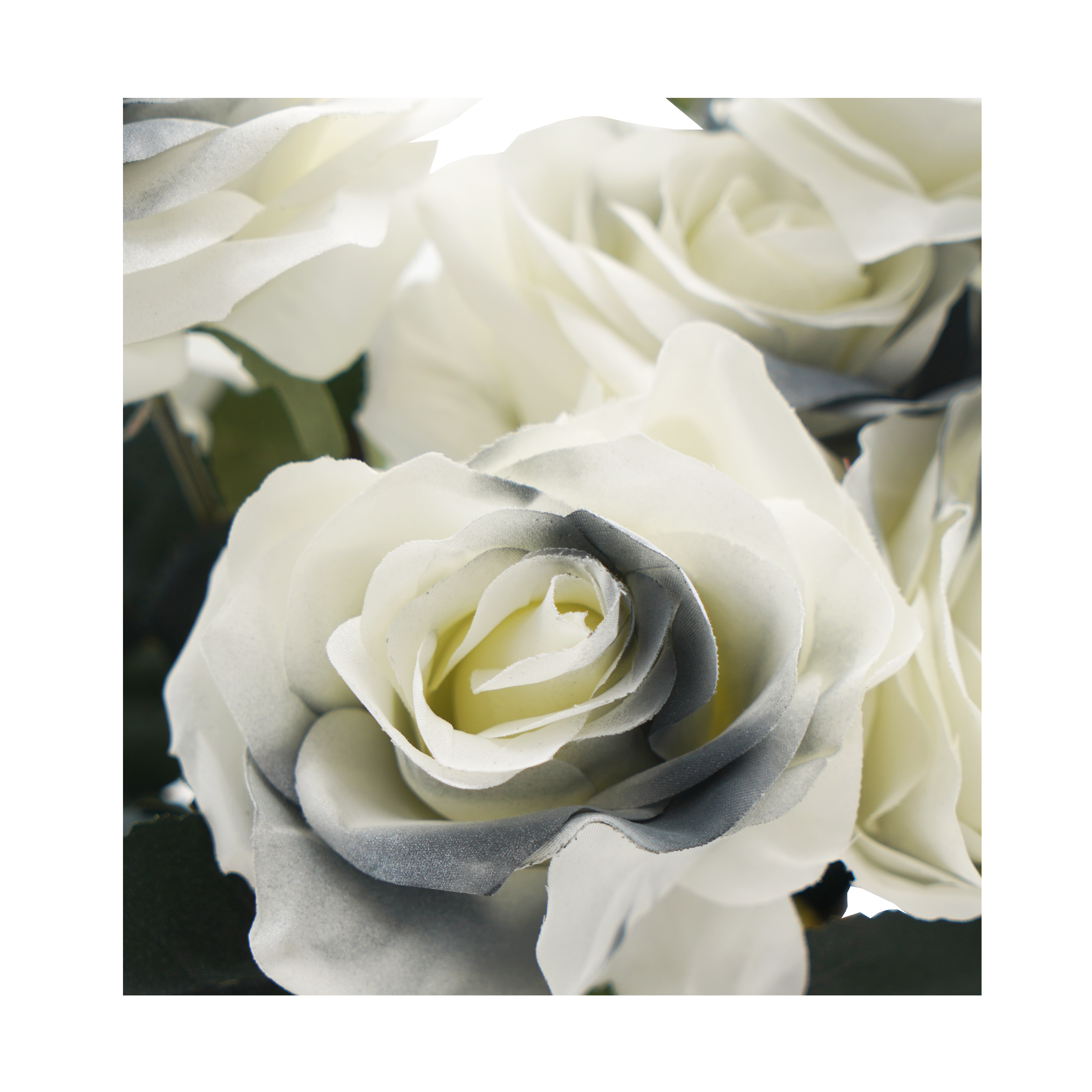 With ten large open heads and green leaves details, our artificial Rose Bouquet will help you create big and vibrant wedding arrangements and bouquets. Or either you can add them to a clear jar, pairing them with light coloured pebbles to give it a simple yet elegant look.