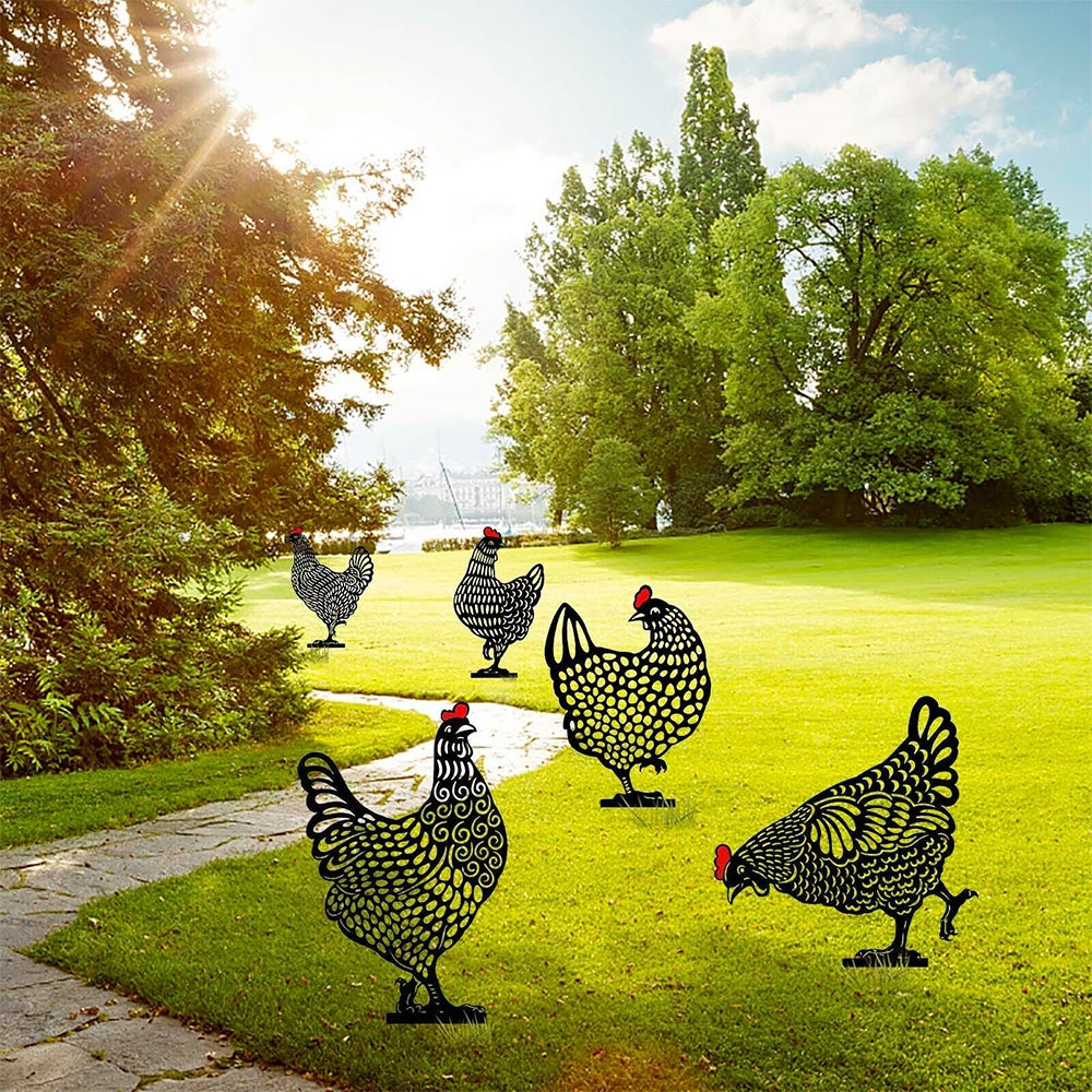 - Each chicken stake is made from Acrylic.The chicken family garden decorations will stand faithfully in garden or flower bed accompany you through rain, sun exposure and windy days.