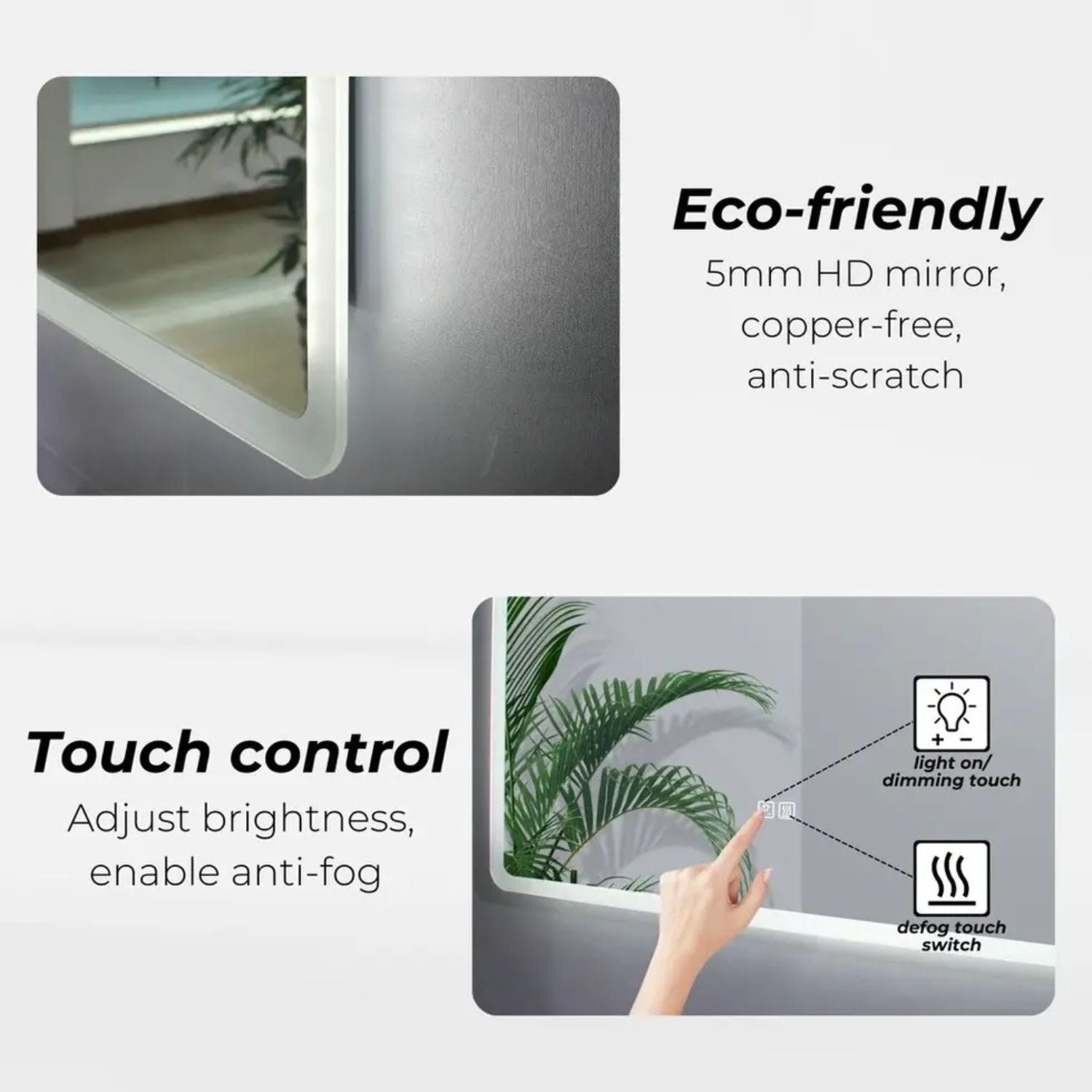 • This bathroom mirror has adjustable LED brightness and enable anti-fogging function with smart touch control.