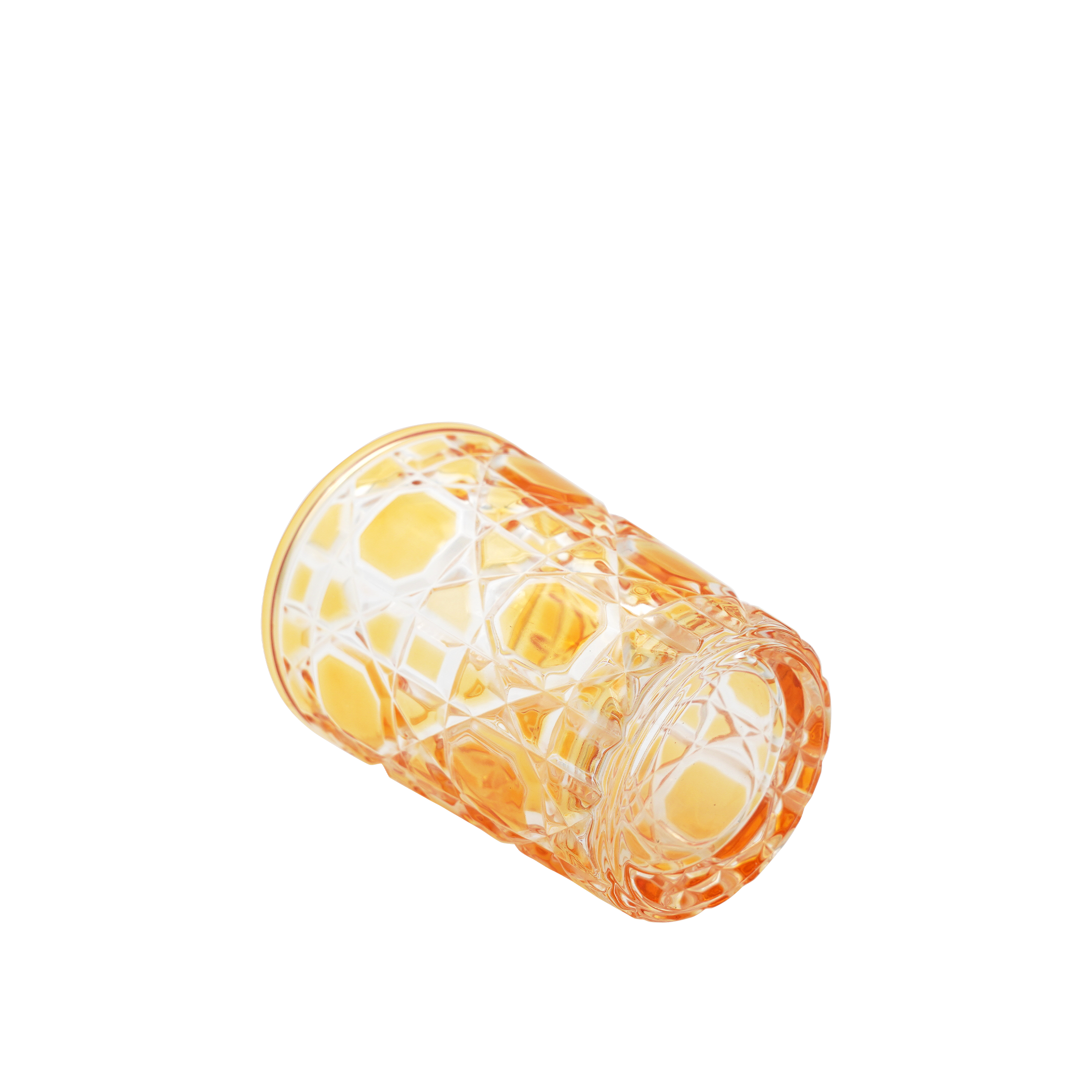 Exquisite craftsmanship, striking texture are the alluring qualities of this water glasses. The linear silhouette of the pieces in glass is hand decorated by hand with a superb series of geometric patterns juxtaposed to create an enlivening surface, highlighted by the different colors that give each glass a distinct character.