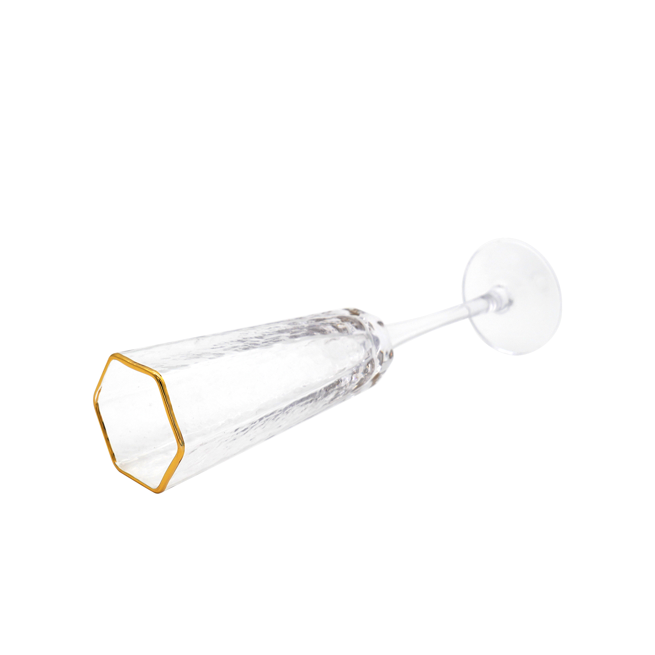 Crafted from high-quality lead-free crystal glass, the Nile Garden Champagne Glass featured with a hexagon shape and a gold rim embellishment, making this tumbler a sophisticated addition to your kitchen. Serve your guest with it and enjoy your drink elegantly.