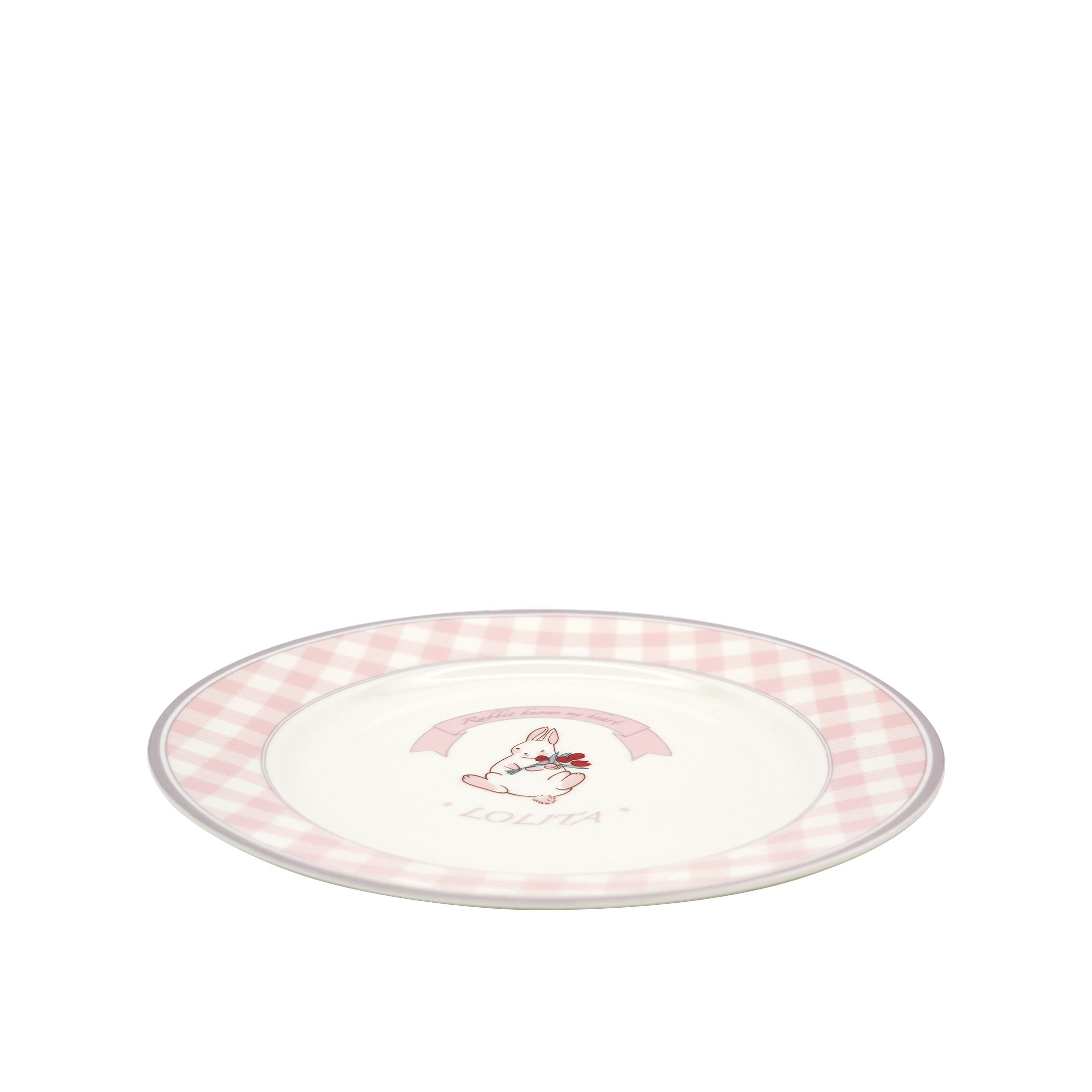 A lively addition to all-white tables, the Rabbit Plate makes a stand-out addition to the kitchen or dining table. It features a hand-painted pink checked print trim with a rabbit in the center, which adds a childishness yet rustic touch to any table setting.