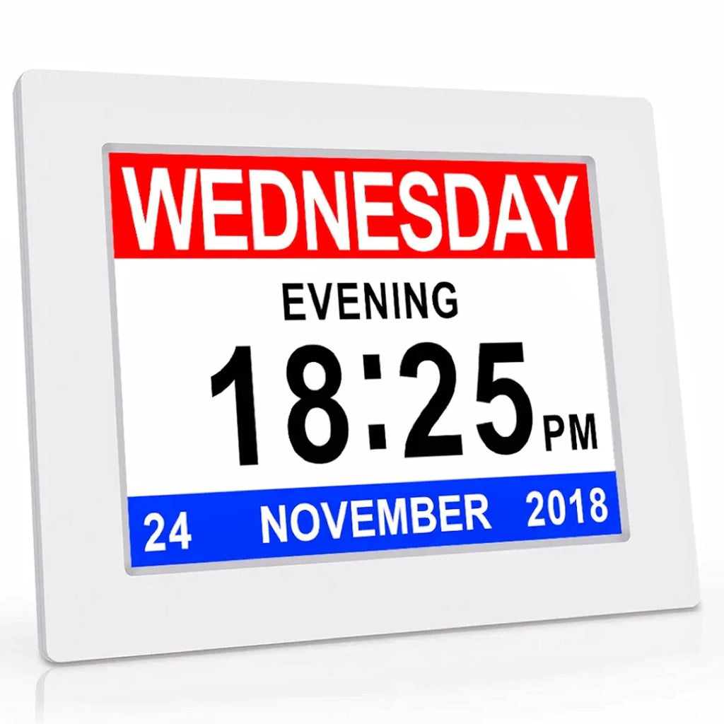 GOMINIMO Day Date Calendar Clock Dementia Clock Digital Alarm Clock with Large LCD Screen (White) GO-DDC-100-JSC