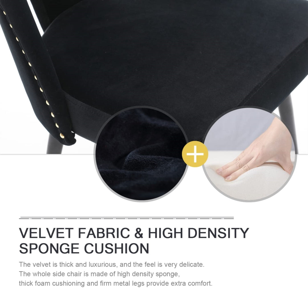 The whole side chair is upholstered in velvet, thick foam cushioning, and sturdy metal legs provide added comfort and support up to 130kgs.