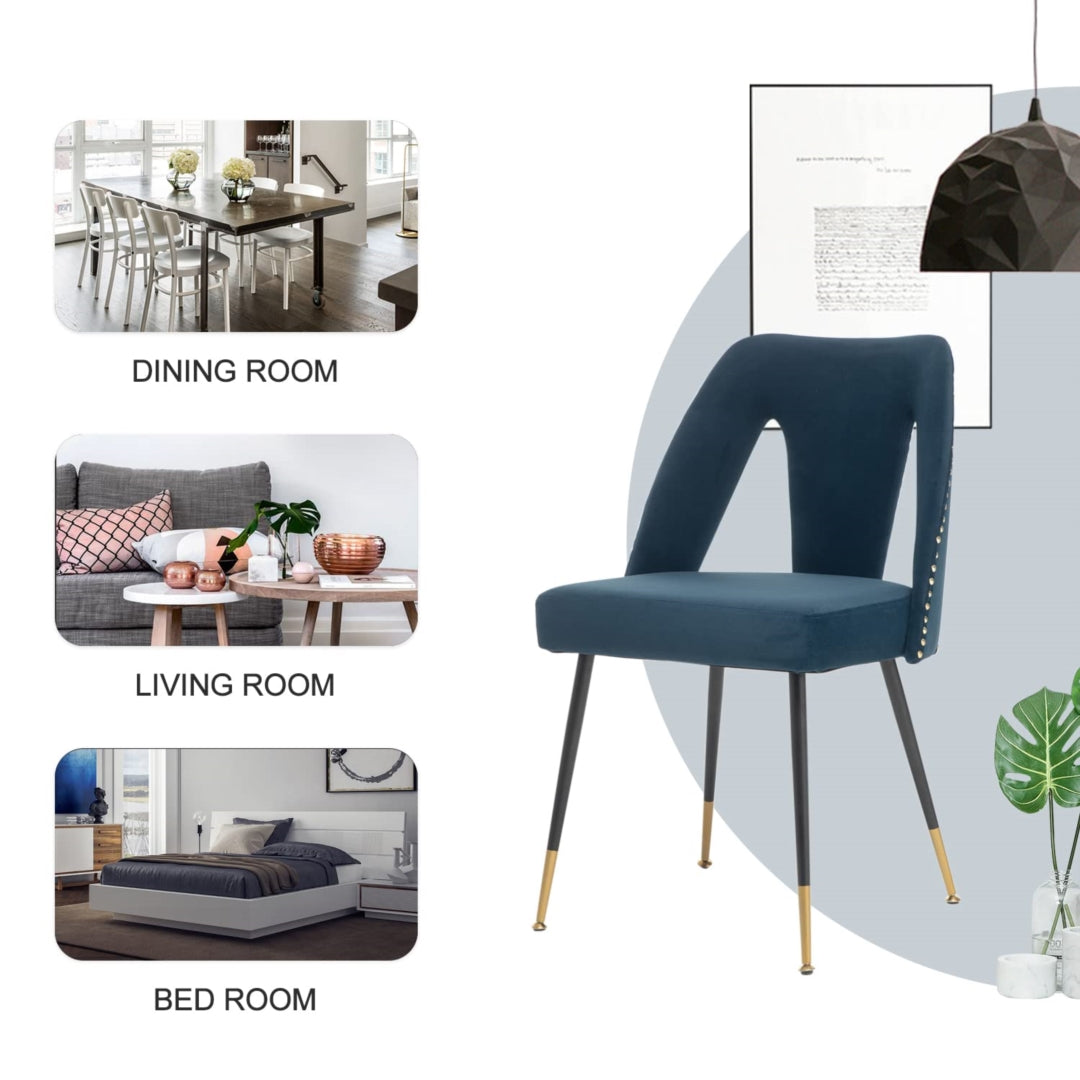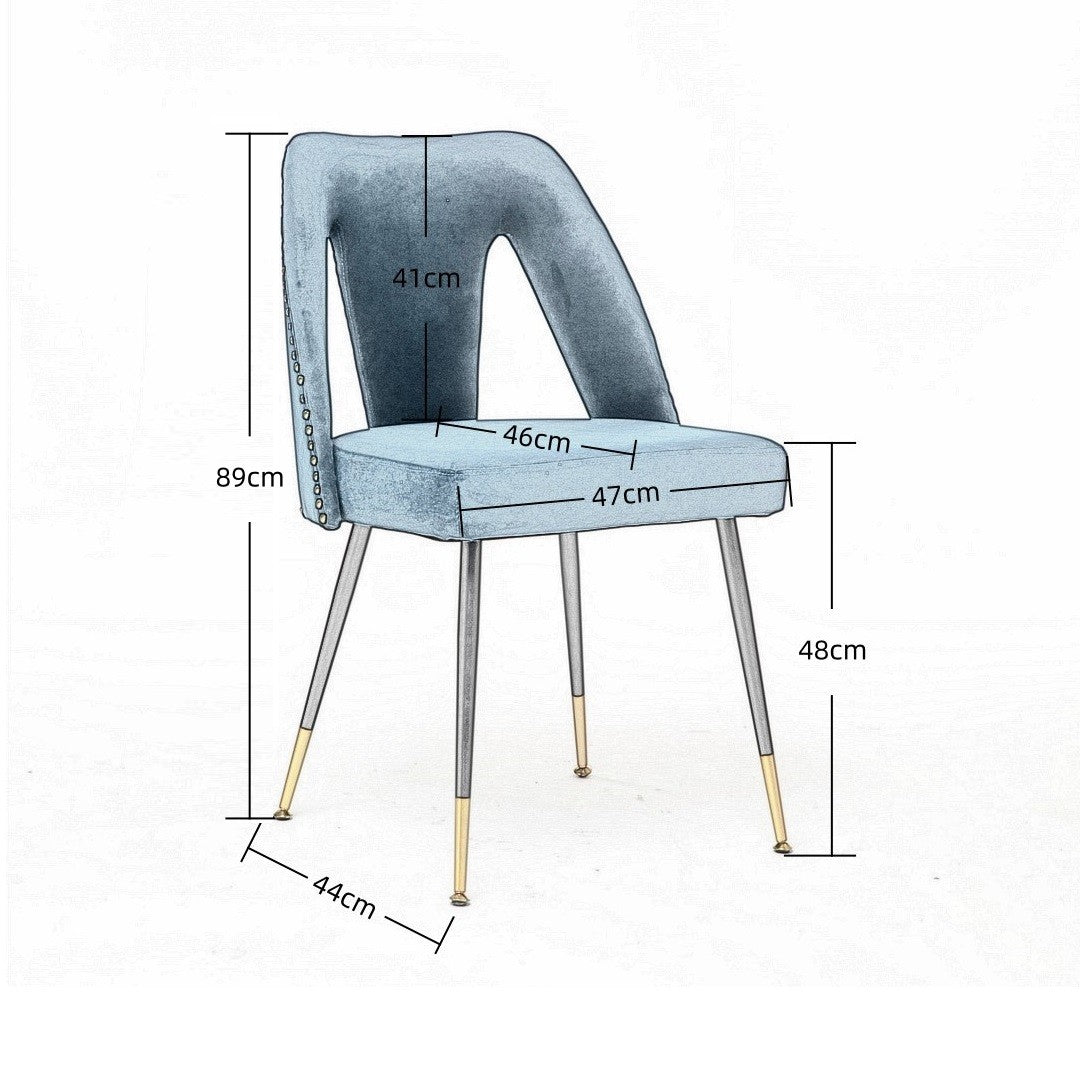 The whole side chair is upholstered in velvet, thick foam cushioning, and sturdy metal legs provide added comfort and support up to 130kgs.