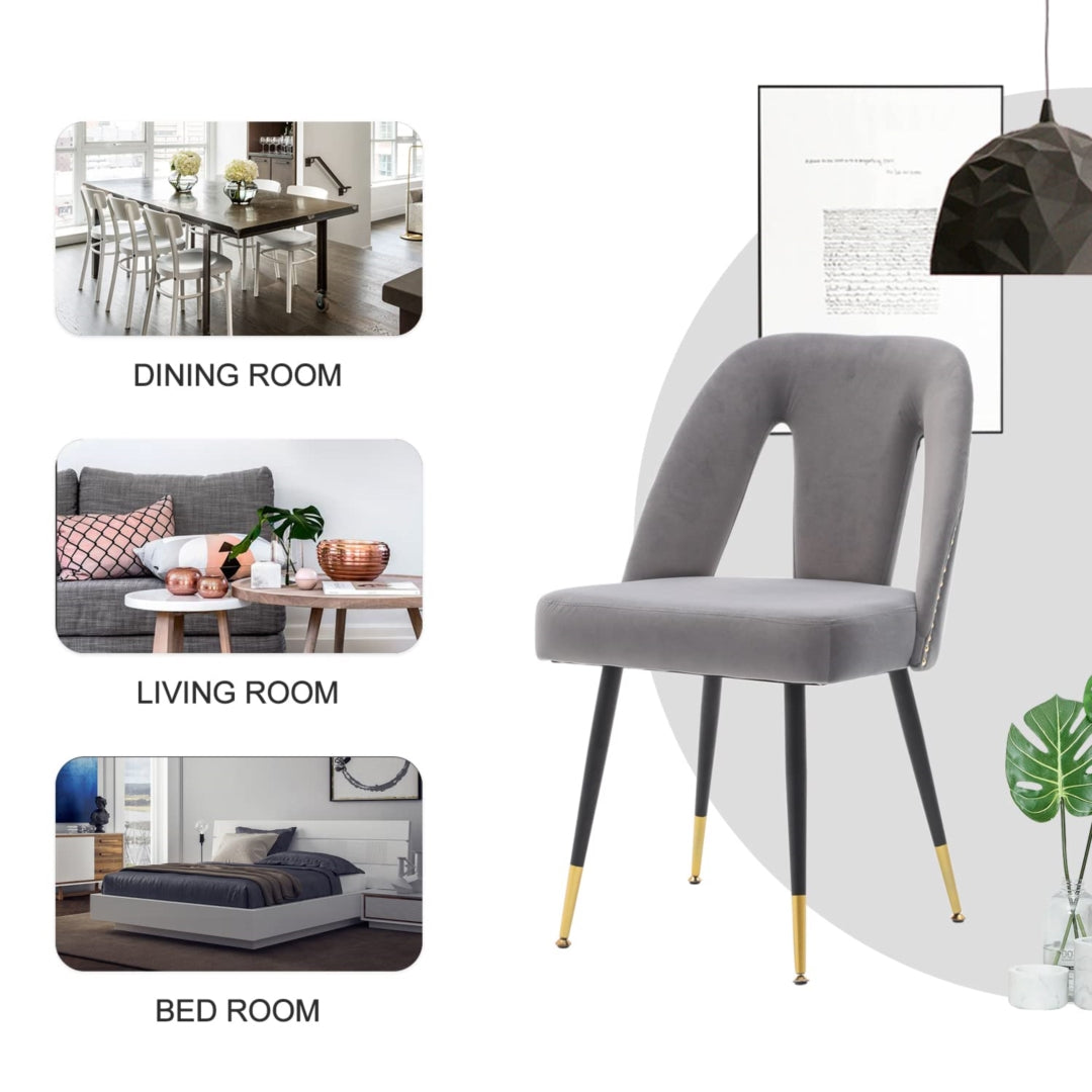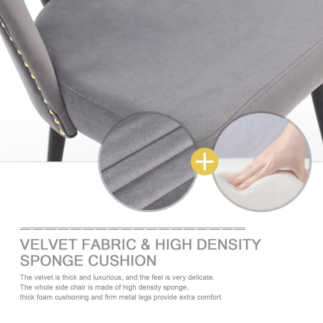 The whole side chair is upholstered in velvet, thick foam cushioning, and sturdy metal legs provide added comfort and support up to 130kgs.