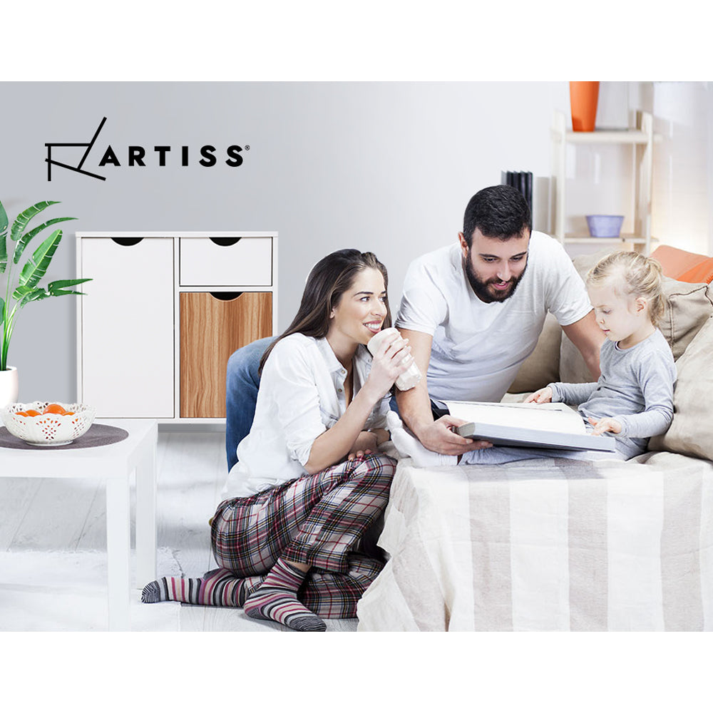 A design that is Scandinavian-inspired and yet reminiscent of decades-old influences, our Artiss Buffet Sideboard offers full functionality with stylish cues. Made from quality particle board with smooth melamine finish, the two-tone buffet sideboard adds some chic appeal to your decor and is the perfect choice to grace any dining room, kitchen, living room or any other space in a discerning home or establishment. The splayed legs add a unique stance to this very able buffet sideboard that also comes with cut-out handles, smooth anti-rust drawer runners, sturdy cabinet hinges and floor protectors for hassle-free use. Not least, ample storage is found with the wide top, one drawer and three shelf spaces behind closed doors, to display all your collectibles or decorations and store all your crockery or tea towels.