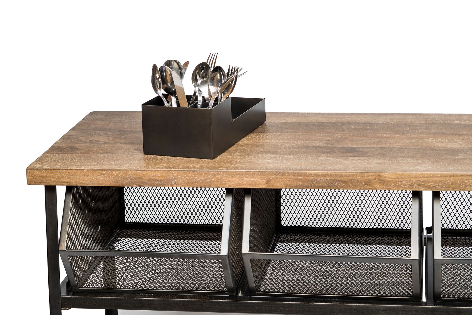 • Material Details: Frame & Basket: Iron | Shelves: Wood